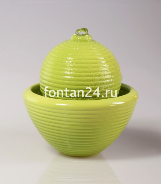 Небольшой яркий настольный декоративный фонтанчик размером 19 см. Вода вытекает из верхней части шара и, переливаясь, стекает в чашу. Такой комнатный фонтан идеально подходит для дома или офиса.
