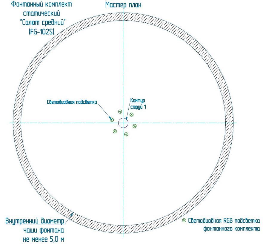 Статический - водная картина не меняется. Встроена программа переключения цветов подсветки. Высота струй может быть отрегулирована при помощи запорной арматуры.