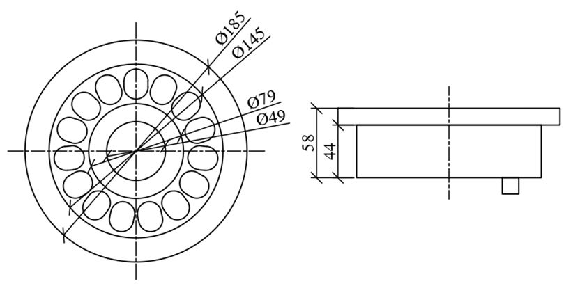 185Ø х 58В х 49Øц |