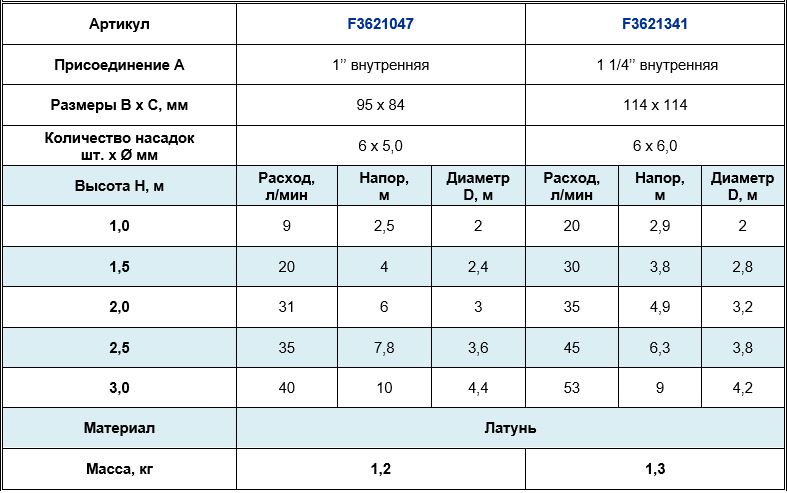 Высота струи max, м