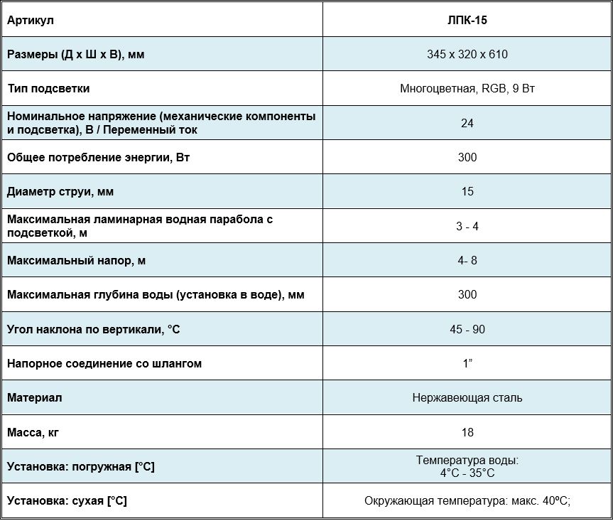 Jumping Jet создает непрерывную иллюминированную струю. Свет проходит по всей ее длине, освещая поверхность, на которую направлена струя. При этом вода падает тихо и не образует брызг. Модель отличается легкостью монтажа и эксплуатации, может устанавливаться как в помещении, так и на улице.